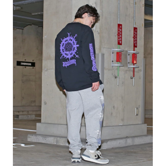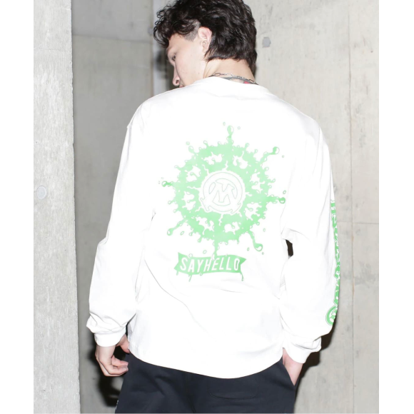 MANASTASH/마나스타쉬/SAYHELLO L/S TEE ※SAYHELLO 콜라보레이션 아이템・면 공방적사라고 하는 실을 사용하는 것으로, 드라이한 감촉을 낸 소재 ・SAYHELLO에서 친숙한 그래픽에 MANASTASH 요소가 교묘하게 넣어져 각각 프런트, 소매, 백에 배치된 호화로운 사양의 긴팔 티셔츠