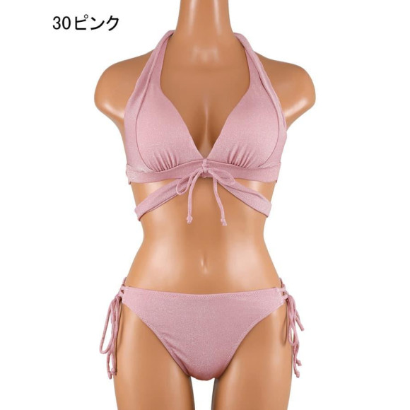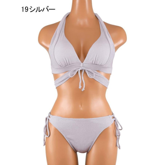 아우터 라이크인 라메 소재를 사용한 내츄럴 업 비키니