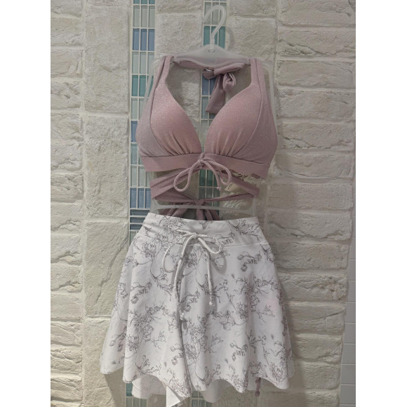 세트의 쇼츠는 레이스 업 사양으로 피부를 전단지 보여주는 디테일이 포인트입니다.