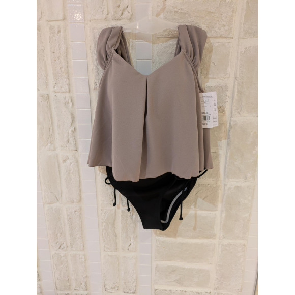 아우터 라이크인 표면 변화 소재를 사용한 원피스풍의 세퍼레이트 수영복
